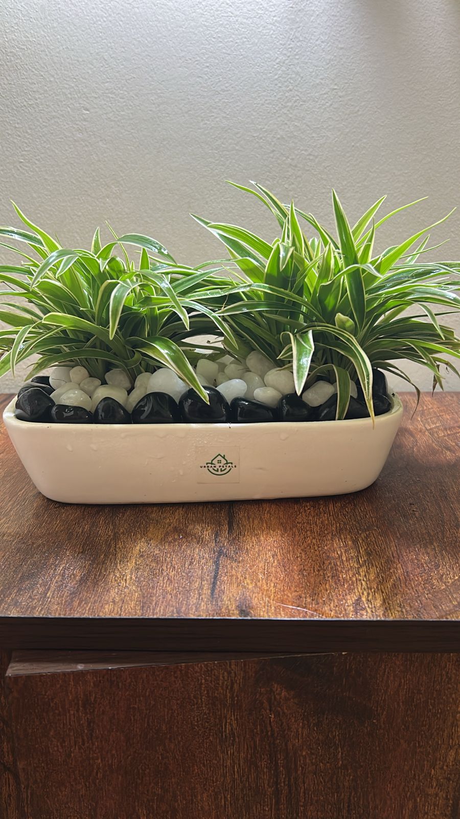 - Humidity: Spider plants appreciate moderate to high humidity. If your home is very dry, especially in winter, consider misting the leaves occasionally or placing the planter near a humidifier. The rocks in the planter may also help to some extent with localized humidity through evaporation.