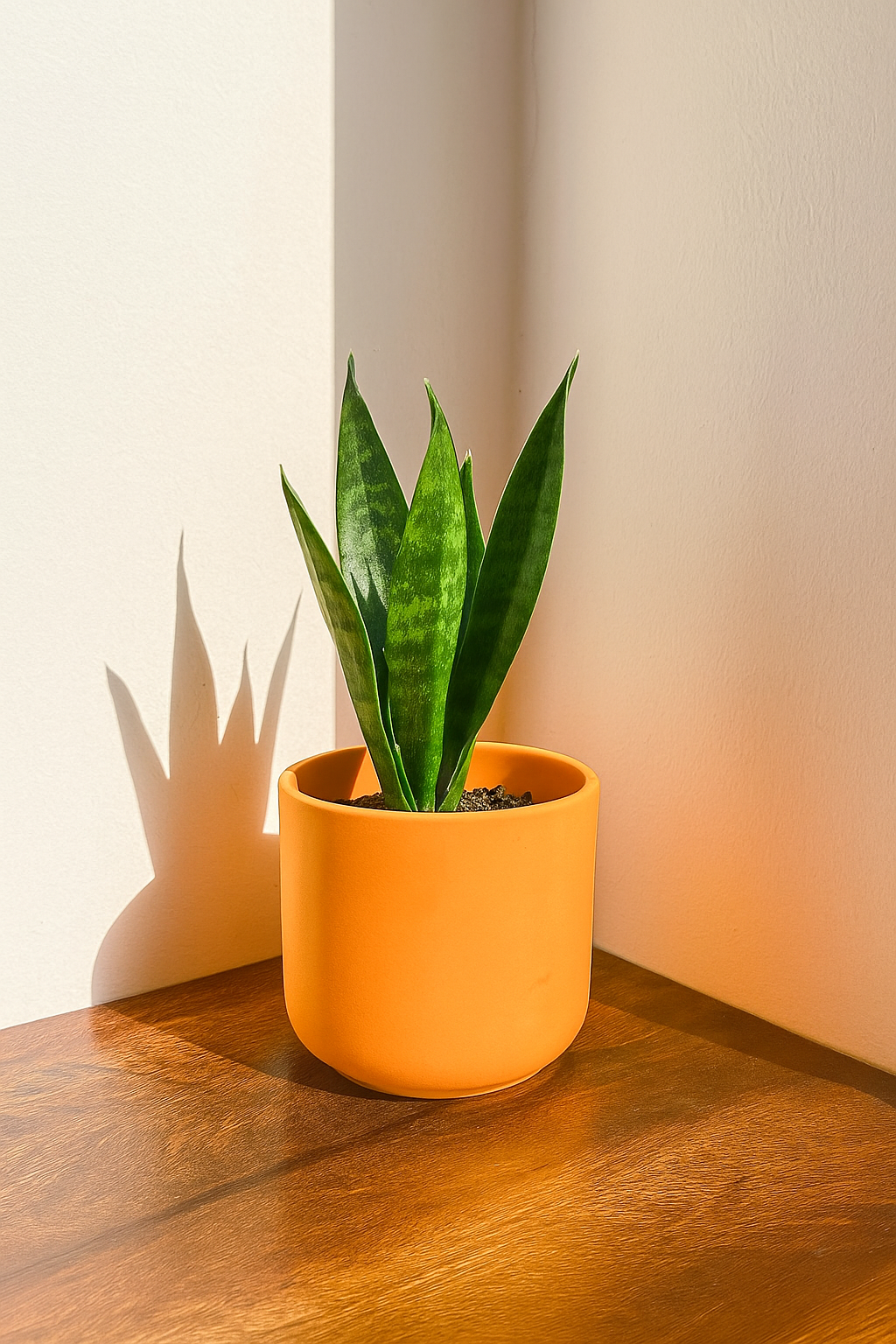 This striking plant, commonly known as the Snake Plant, is renowned for its sculptural beauty and nearly indestructible nature. This plant placed in a 4 inch ceramic pot adds bold, vertical elegance to any space.