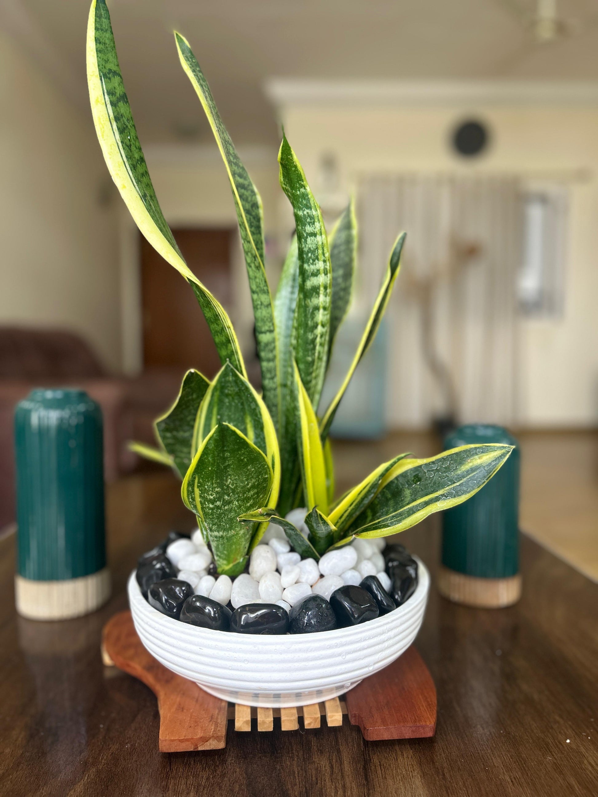 Transform your space with this sleek, architectural beauty—perfect for modern living rooms, bedrooms, or offices. With its upright, variegated foliage, the Snake Plant adds vertical interest and style while requiring minimal upkeep.